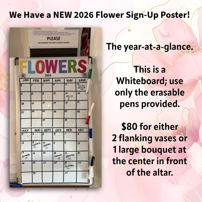 As we enter both a new month and a New Year, please review those individuals for whom special intentions are still being sought and inform the church office. Unless you confirm a continuation at the end of four weeks, names will be deleted. We gladly welcome prayer requests and prayers are always available.