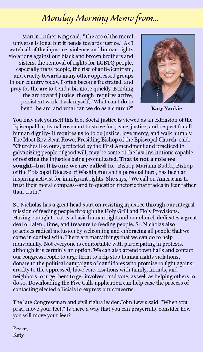 A deep thanks to Olivia Drakes, Junior Warden, Bob Reid, sexton; Jack Gillis, Holy Grill/Provisions manager; Sue Giordano, bingo coordinator and Tricia Blair, parish administrator for all their assistance to the police and to facilitate cleaning and repair.
