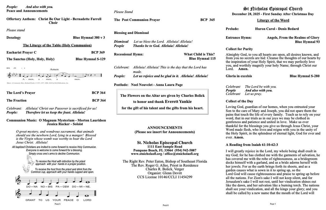 December 28, 2025 - First Sunday After Christmas Day